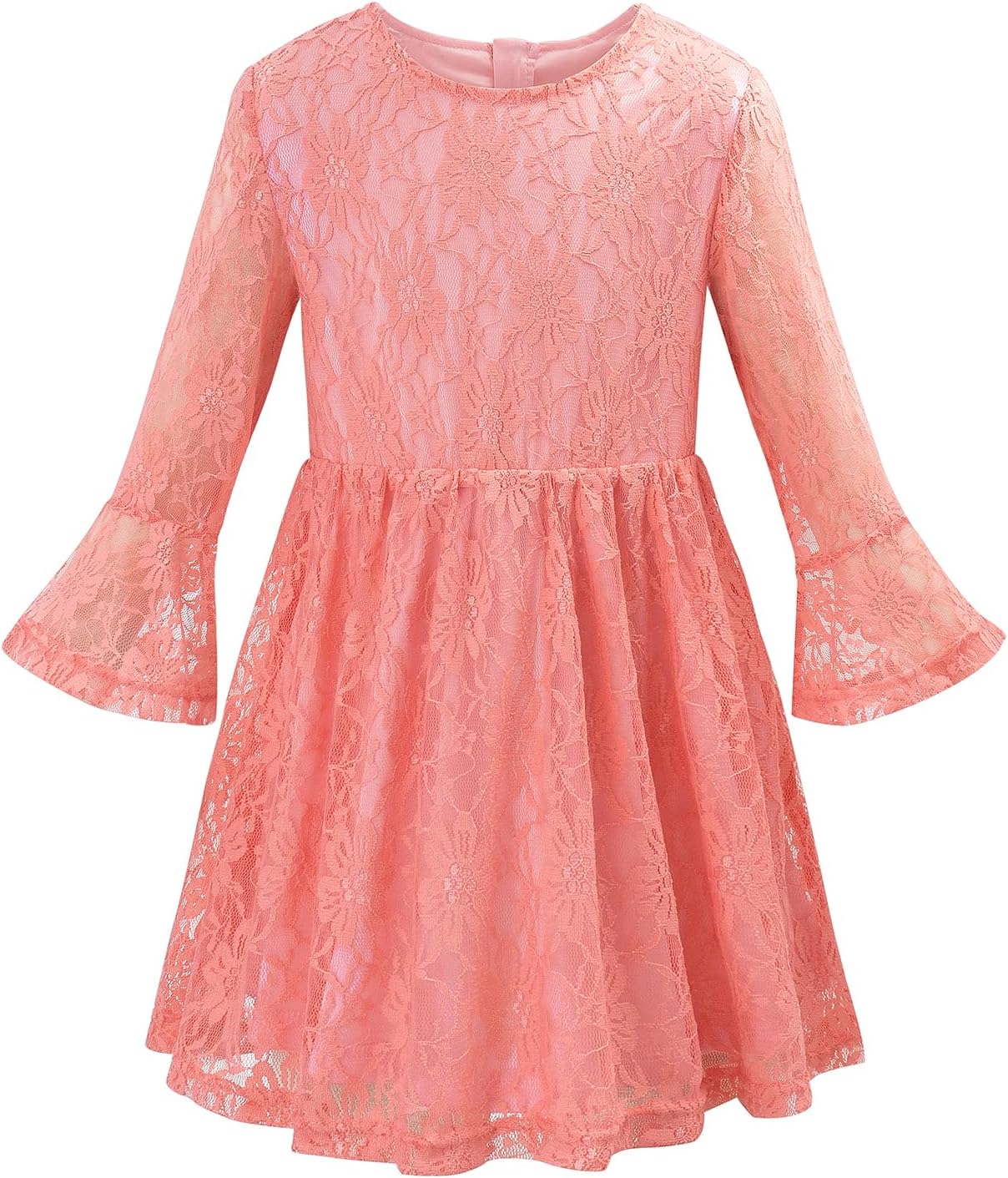 Noomelfish Toddler Bell Sleeve Lace Dress Long Sleeve Party Formal Wedding Flower Girl Dress (3-10 Years)