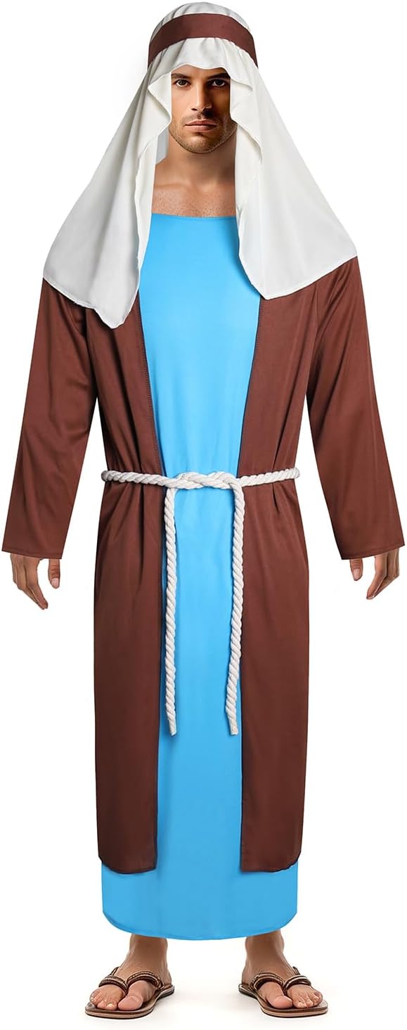 Mens Joseph Shepherd Costume Adult Jesus Cosplay Outfit Nativity Church Tunic Robe Biblical Dress Up Suit