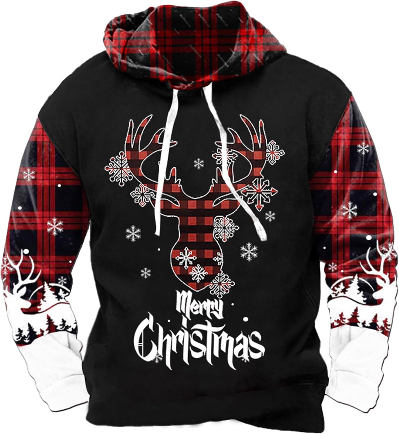 Arvilhill Men's Ugly Christmas Hoodies Vintage Red Plaid Sweatshirt (S-3XL)