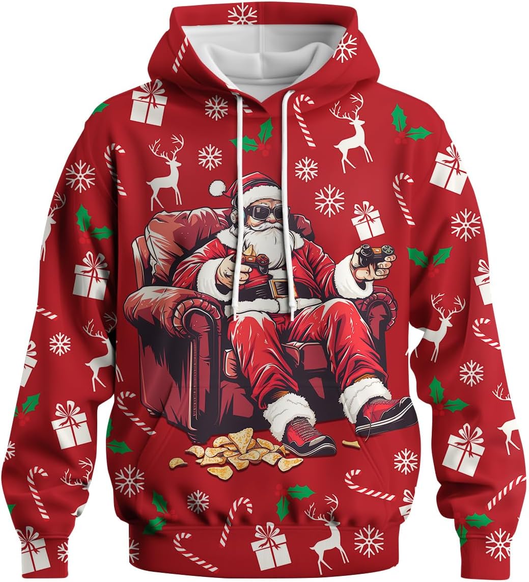 Christmas Hoodie Funny Santa Claus Print Sweatshirt Pullover for Men Women