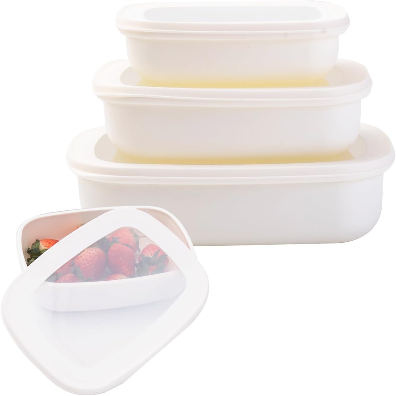 Stackable Food Storage Containers with Clear Lids, 3 Piece Set, Nesting Design, Food Prep Bowls for Refrigerator