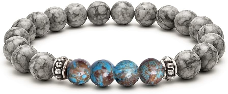 Kartini Studio Natural Stone Bracelet for Men, Gift Idea for Man, Men's Bead Bracelet, Grey Jasper and Blue Jasper Jewelry for Man
