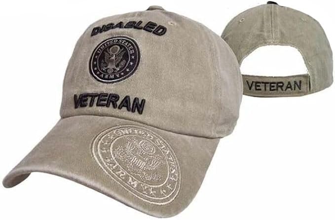 Trade Winds US Army Disabled Veteran Subdued Khaki Cotton Embroidered Cap Hat Licensed