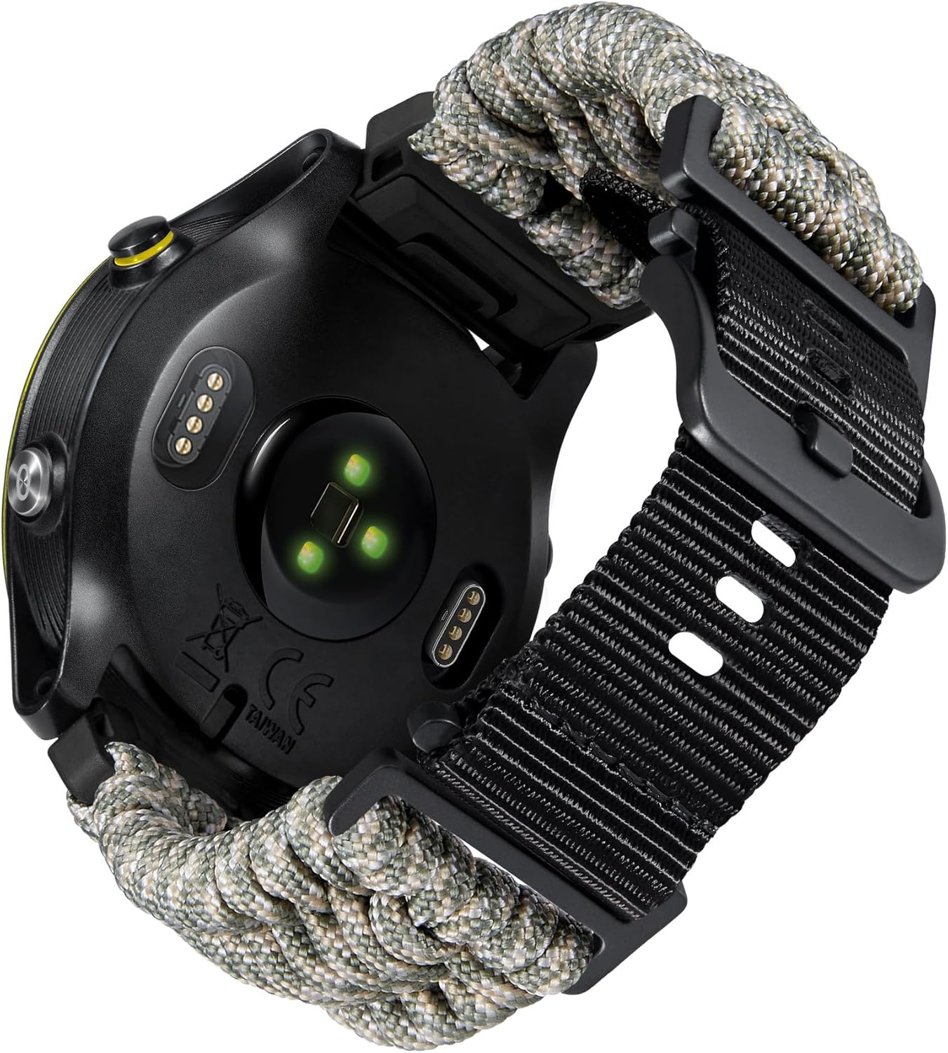 - 【Pemium Material】Our military type watch band compatible with Garmin watches are handcrafted from premium 550 paracord and nylon material, which is super sturdy and robust. Also, the connectors and buckle are made of stainless steel, which is pretty rugged in outdoor sports and daily wear.