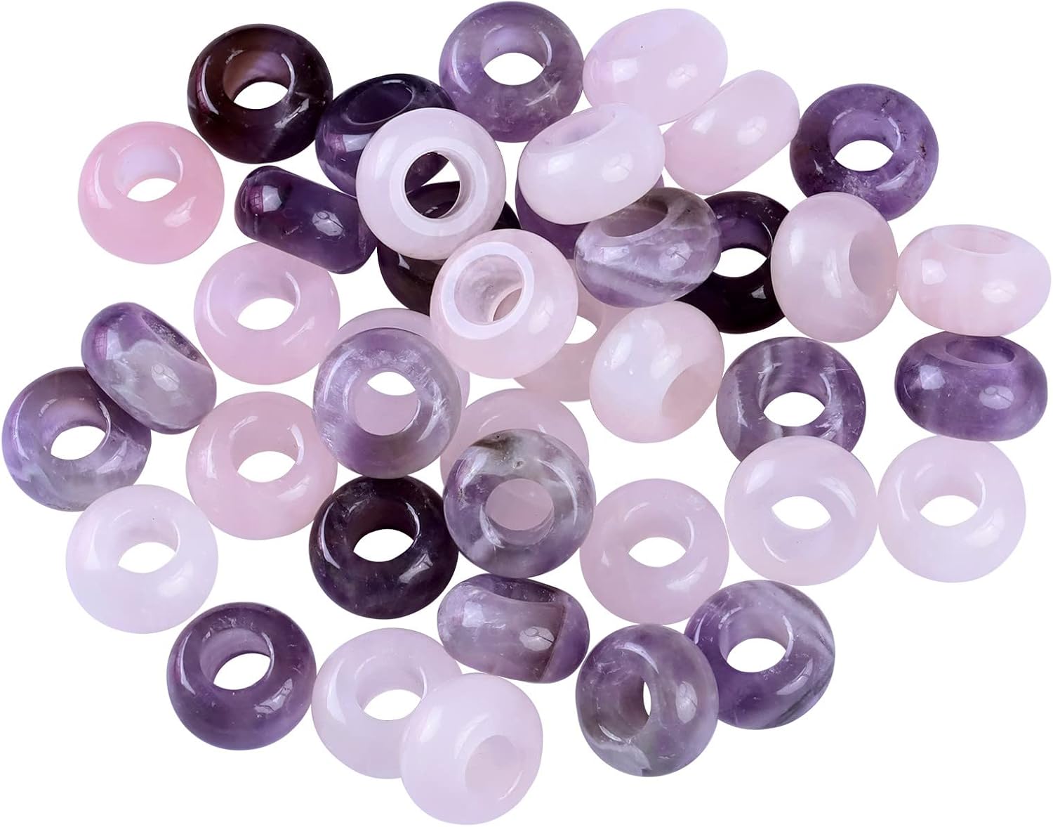 TUMBEELLUWA 40pcs Crystal Stone Large Hole Beads for Jewelry Making Macrame Beads for Hair Braids(14mmx8mm), Amethyst + Rose Quartz