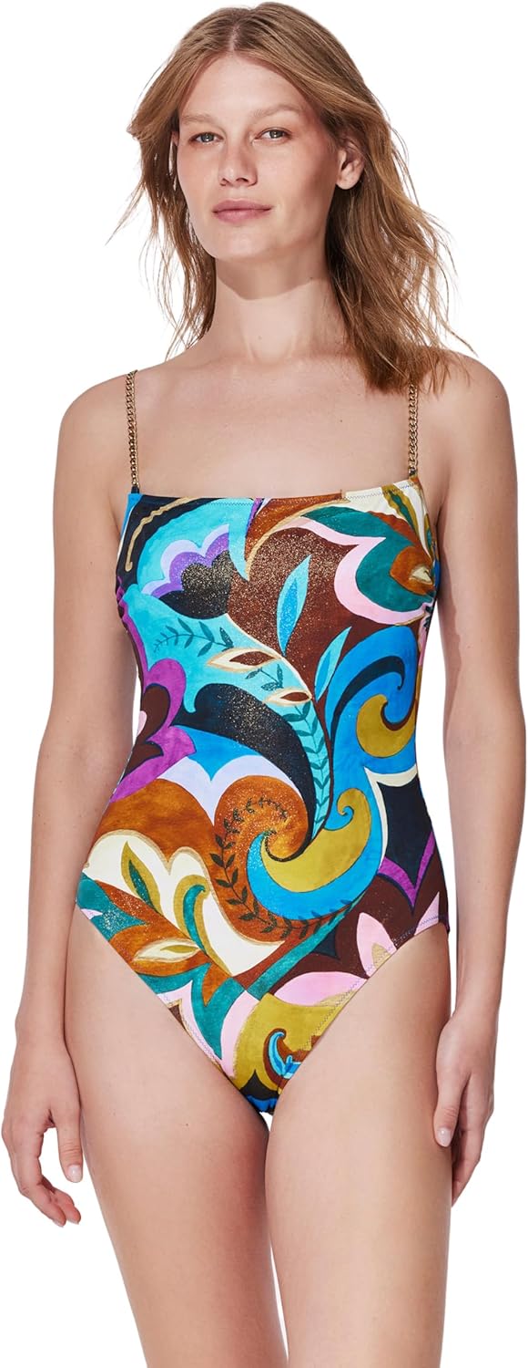 Gottex Round Neck One Piece - Built-in Soft Cups, Adjustable Chain Straps, Front & Back Lining, Classic Bottom Coverage