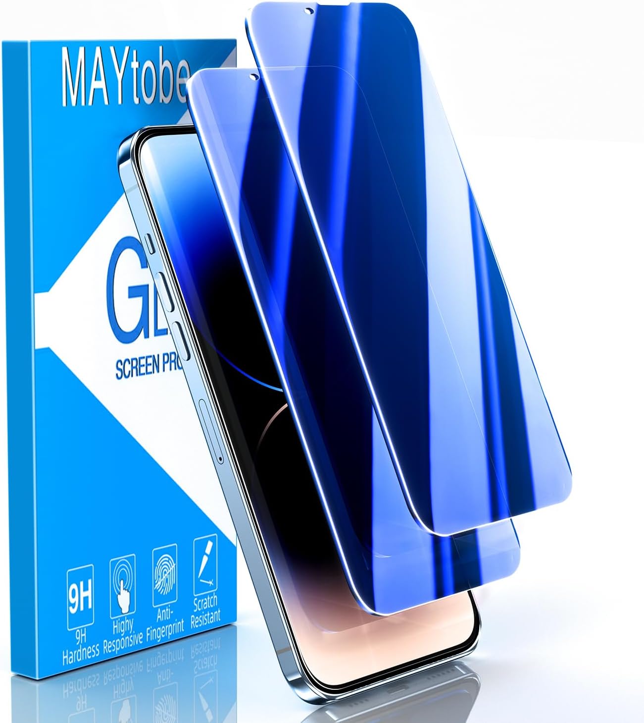 MAYtobe [2-Pack Privacy Screen Protector Designed for iPhone 16e, iPhone 14, iPhone 13 Pro, iPhone 13 Anti-Blue Light Tempered Glass, Eye Protection, Blue Anti-Spy, Colorful Gradient, Anti-Scratch