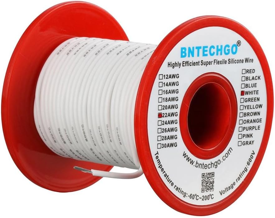 BNTECHGO 22 Gauge Silicone Wire Spool 100 ft White Flexible 22 AWG Stranded Tinned Copper Wire