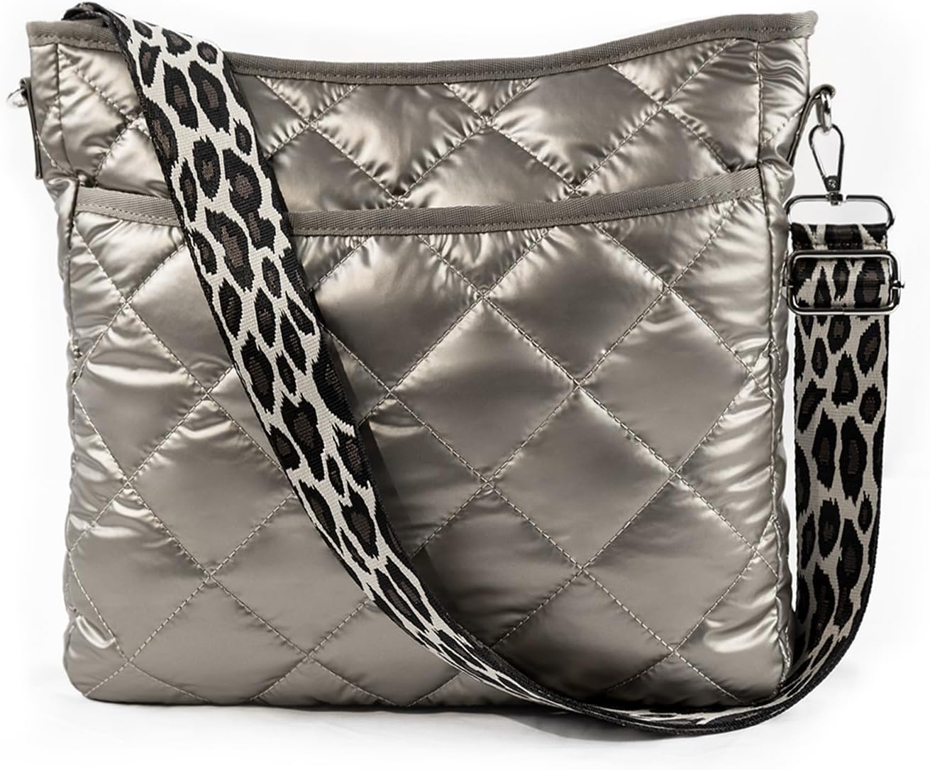 WiseBoy Quilted Crossbody Bag, Puffy Crossbody Purses with Wide Strap, Cotton Quilted Shoulder Bags for Women