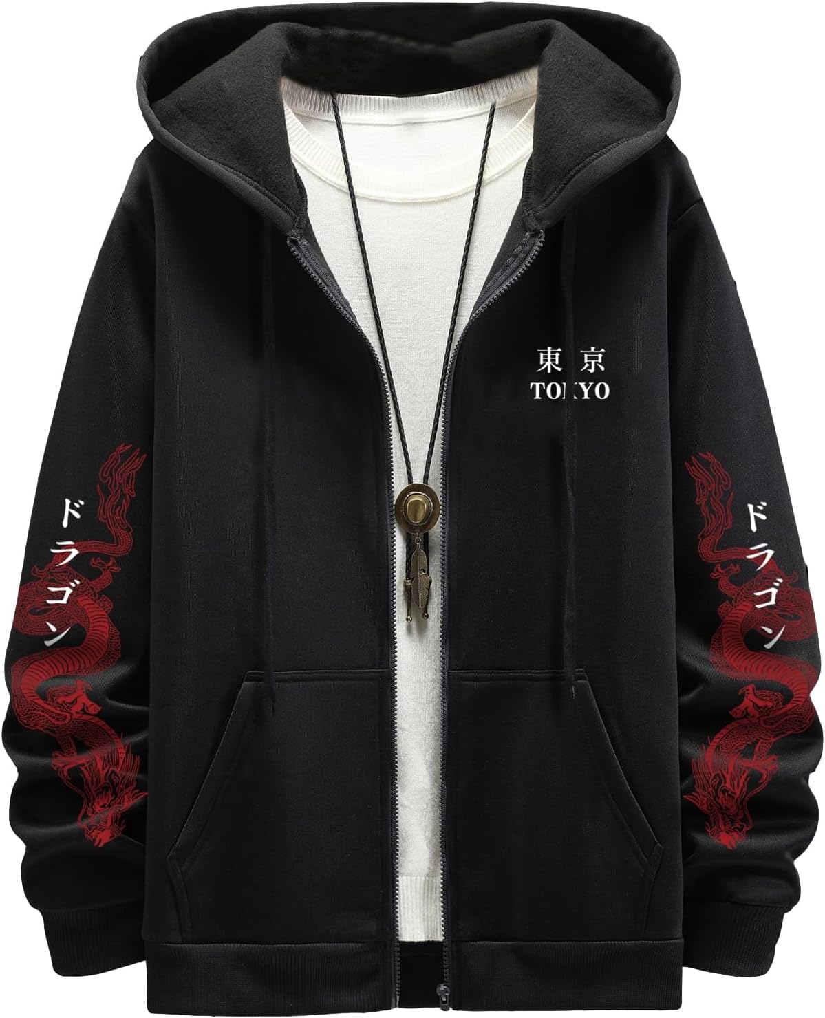 Floerns Men's Letter Print Long Sleeve Zip Up Hoodie Thermal Sweatshirt