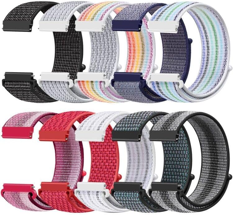 Tiptops 10 Pack Nylon Bands Compatible with Samsung Galaxy Watch 6 5 4 /Watch 3 41mm/Active 2/Garmin Vivoactive 5/Vivoactive 3 Amzfit Bip 3 Pro/Bip 3/Ticwatch 2 / E / C2, 20mm Watch Straps