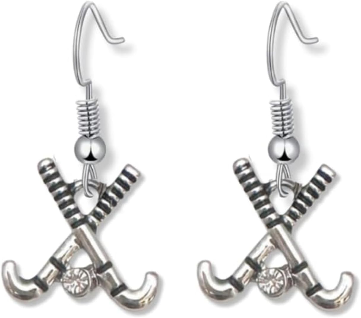 Silver Field Hockey Stick Dangle Earrings – Sports-Themed Jewelry Accessories, Lightweight & Stylish, Team Gift for Field Hockey Players, Coaches and Fans