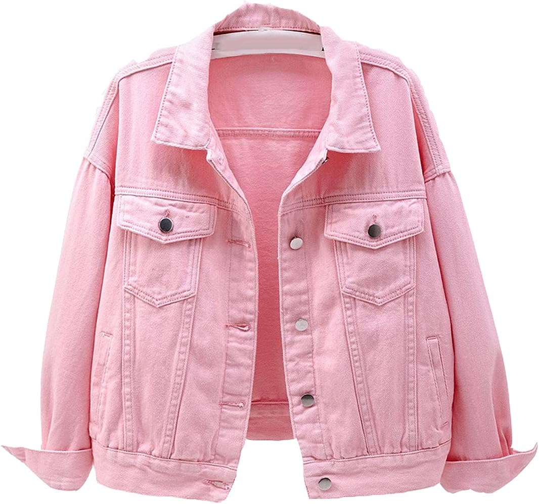 VIEWON Women's Casual Denim Cotton Button Down Long Sleeve Lapel Loose Jacket Coat