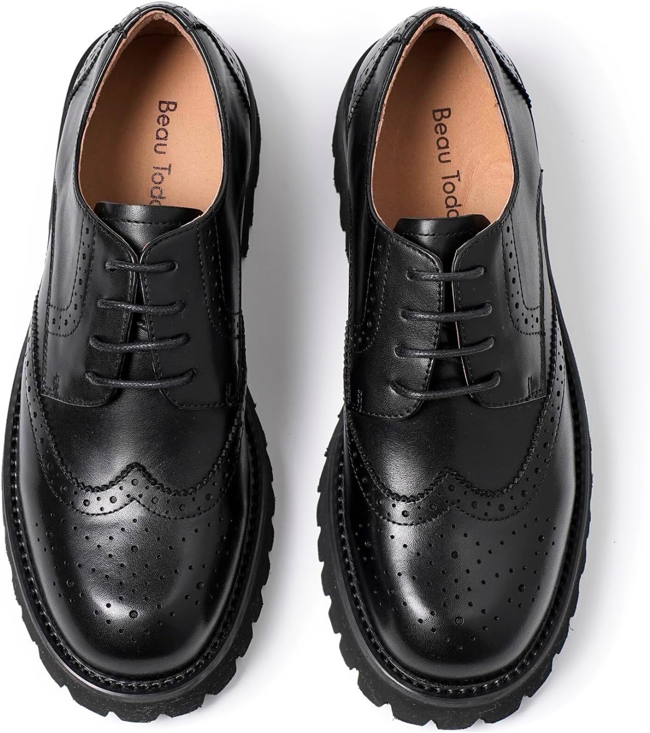 BEAU TODAY Platform Oxfords for Women, Oxford Shoes for Women, Chunky Leather Lace Up Oxford Shoes, Casual Comfort Business Work Office Dress Shoes