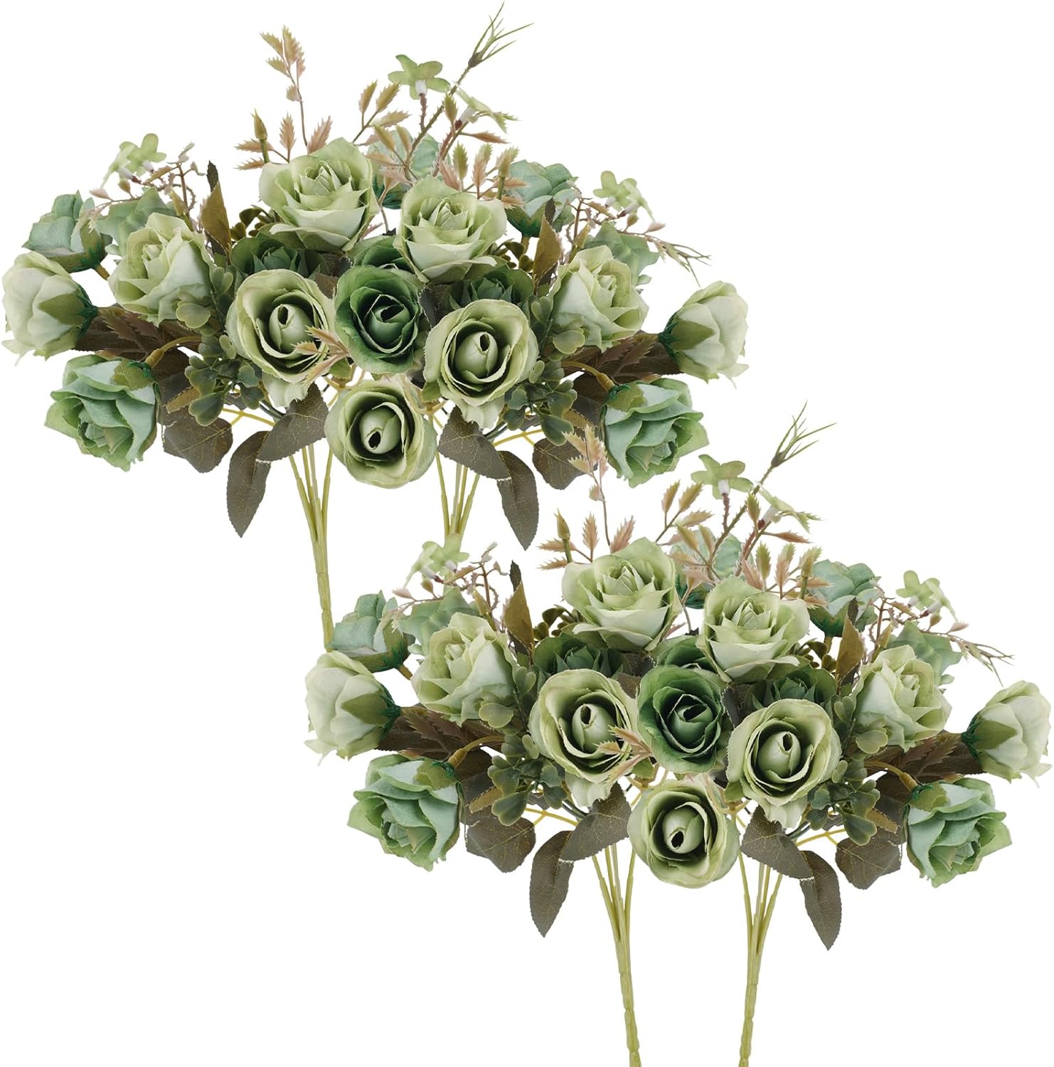 - 4 Bouquet Set: The package includes 4 packs of artificial flowers. Each pack has 5 stems and 10 sage green rose buds. Crafted with high-quality silk material and intricately handcrafted.