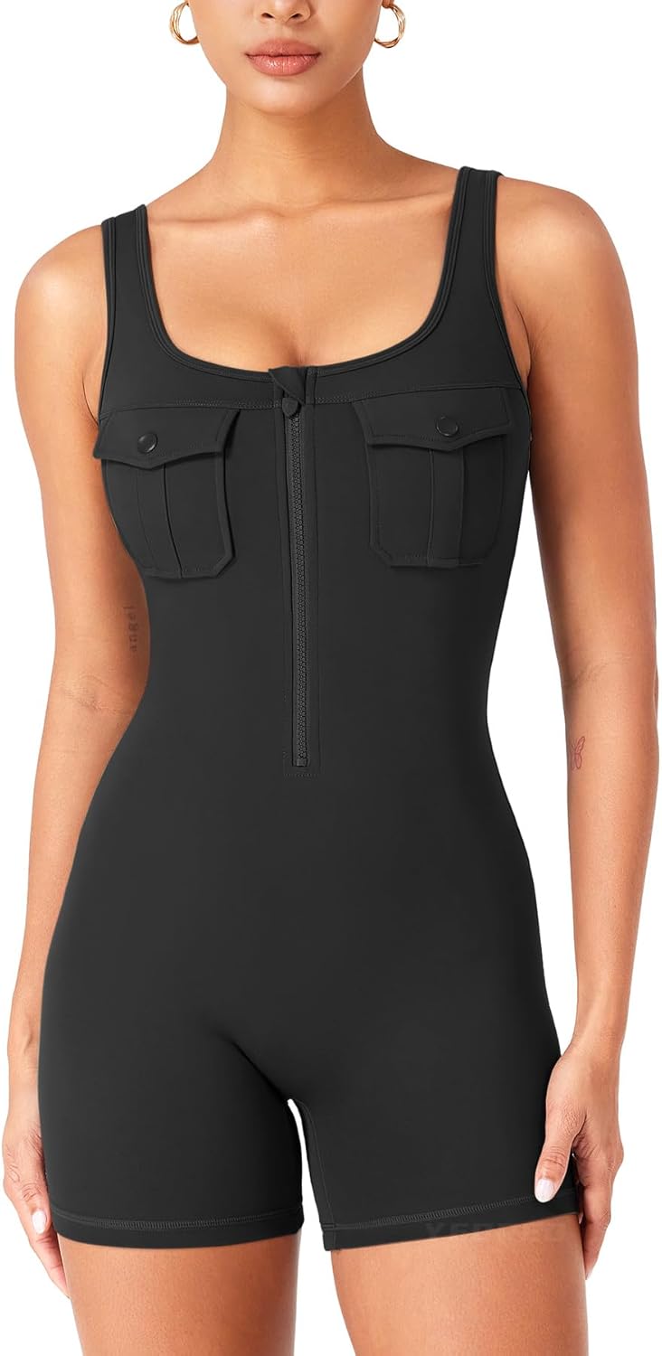 YEOREO CoreFlex Workout Jumpsuits for Women One Piece Backless Sleeveless Jumpsuit with Pockets Cargo Zip Up Gym Yoga Rompers