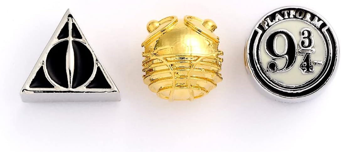 The Carat Shop HP000002 Official Harry Potter Set of Charms Deathly Hallows Golden Snitch & Platform 9 3/4