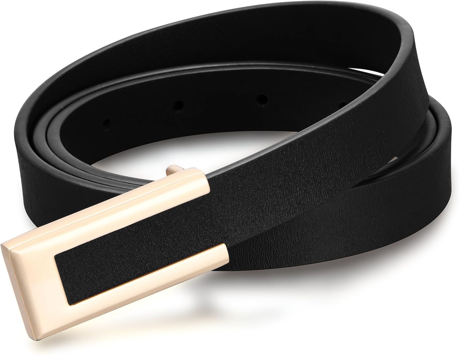 Genuine Leather Belts for Women Skinny Waist Belt for Dresses Jeans Pants with Gold Buckle