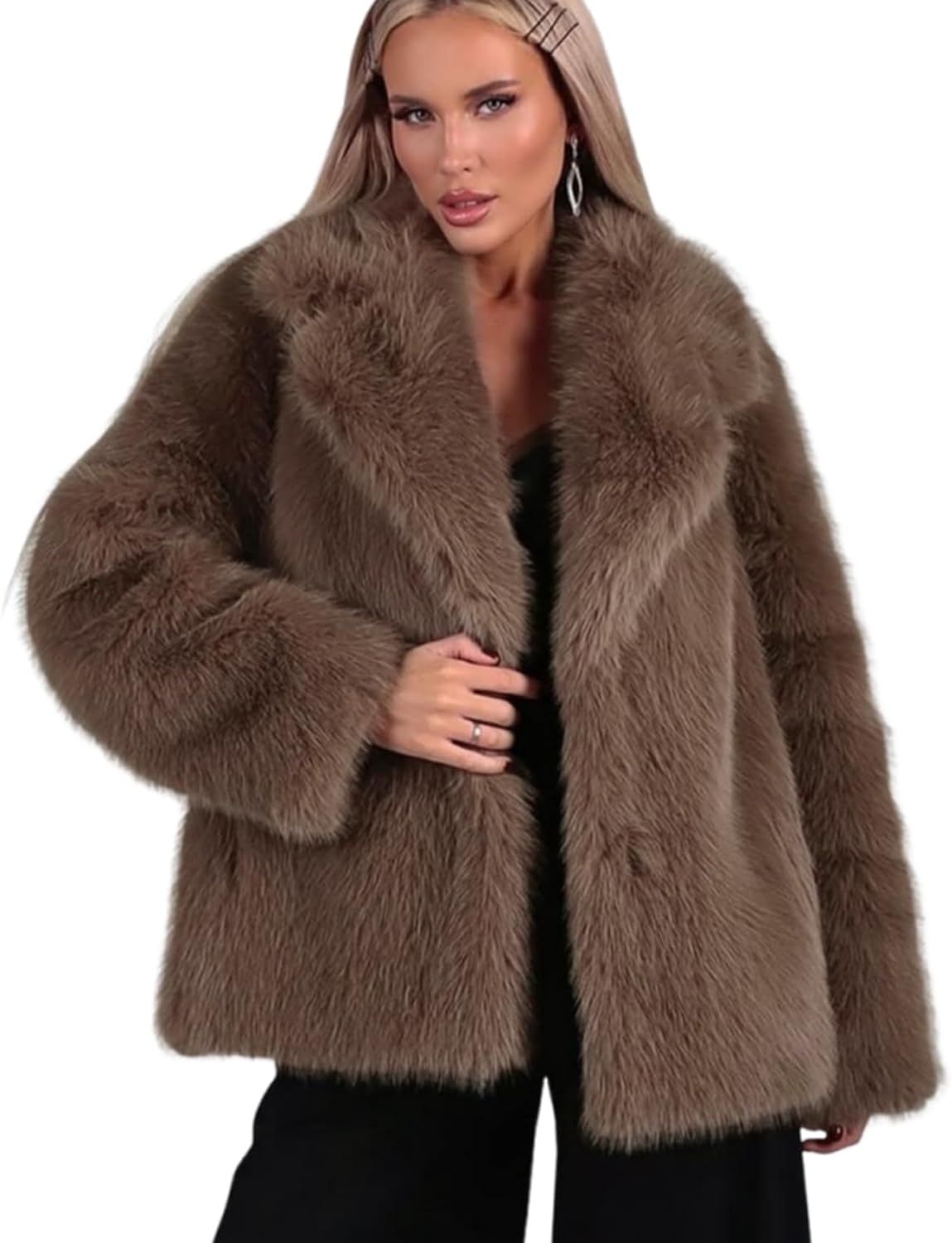 Arssm Women's Faux Fur Coat Long Sleeve Fluffy Jacket Open Front Furry Winter Warm Lapel Shaggy Coat Outwear