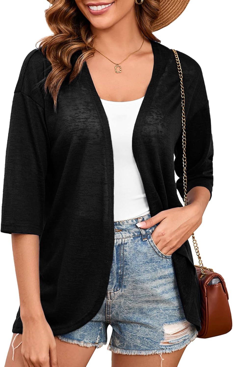 Heymoments Women's Lightweight Open Front Knit Cardigans 3/4 Sleeve Casual Soft Drape Summer Cardigan S-2XL