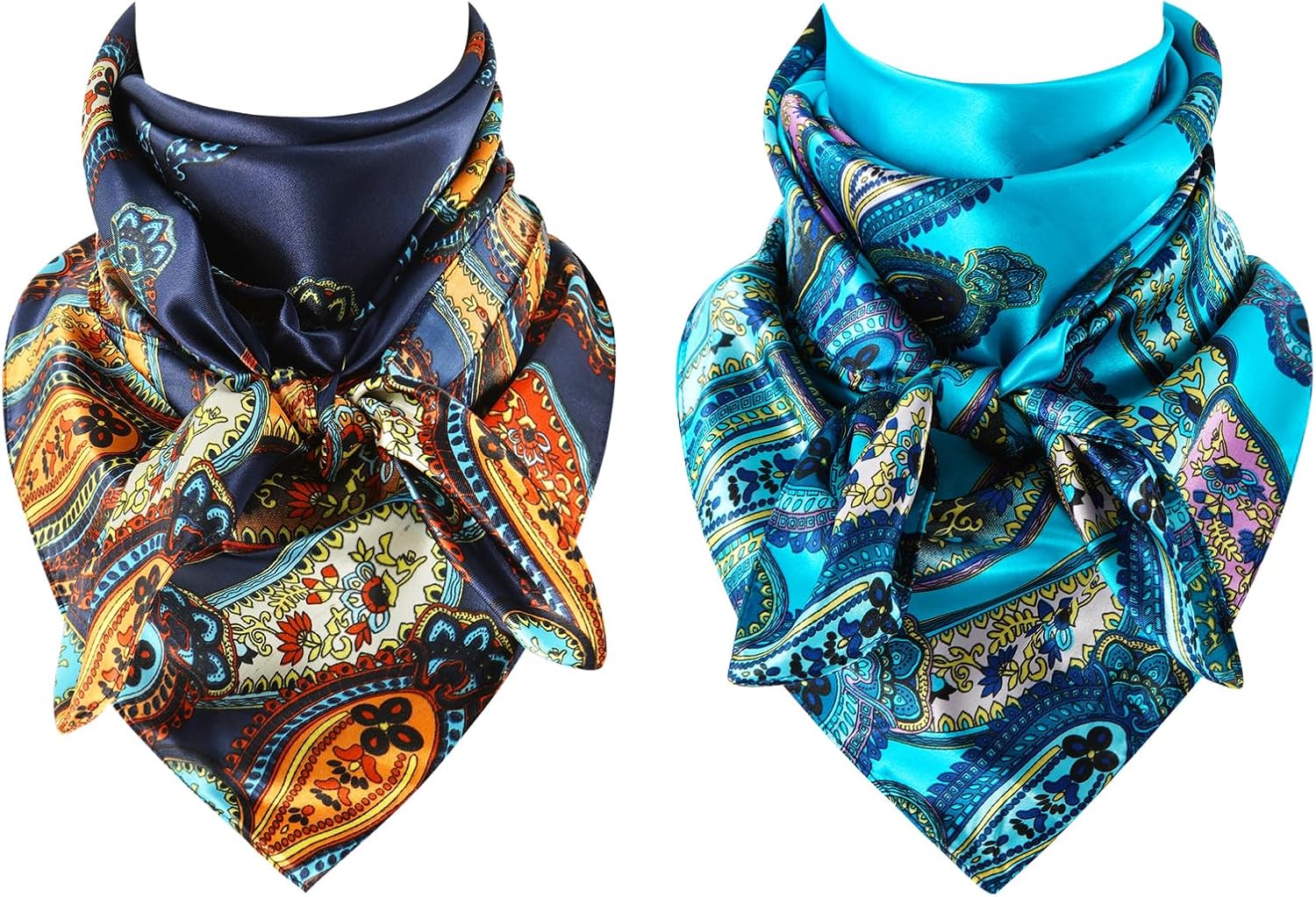 GERINLY Mens Wild Rag 2 Pack, Western Scarves Cowboy, Silk Feel Bandana Square 35 Inch