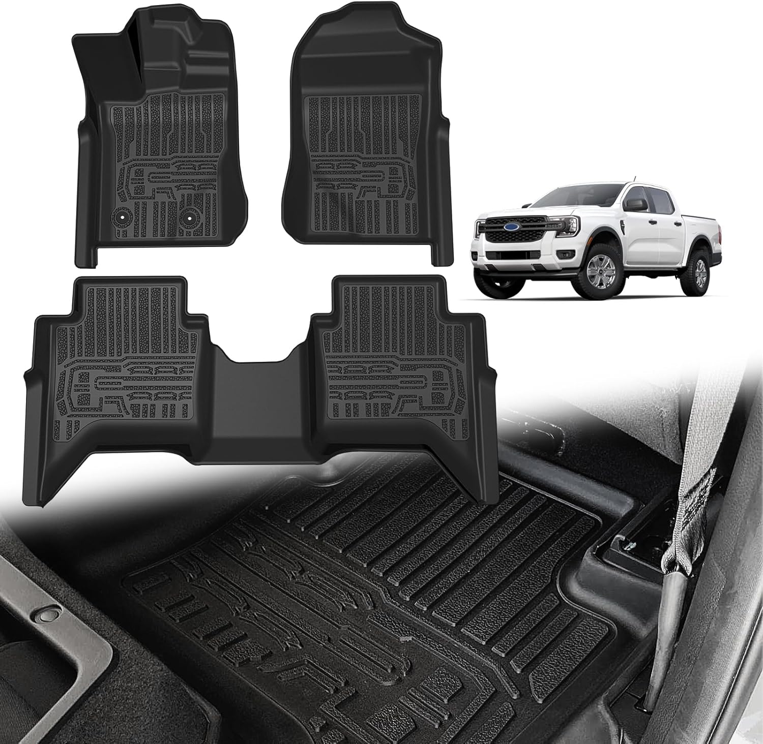 - Perfect Fitment: Triplealines for 2024-2025 Ford Ranger SuperCrew Floor Mats are designed according to the 3D laser scan data to make sure it fits your Ranger perfectly. (Package includes 1st & 2nd row floor mats)