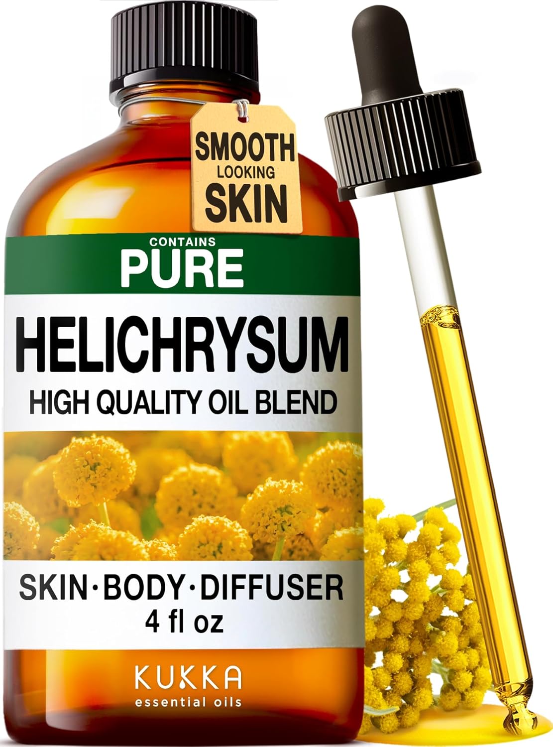 KUKKA Helichrysum Essential Oils - 4 Fl Oz - for Hair, Skin, Diffuser, Aromatherapy & DIY Soap Making Scent