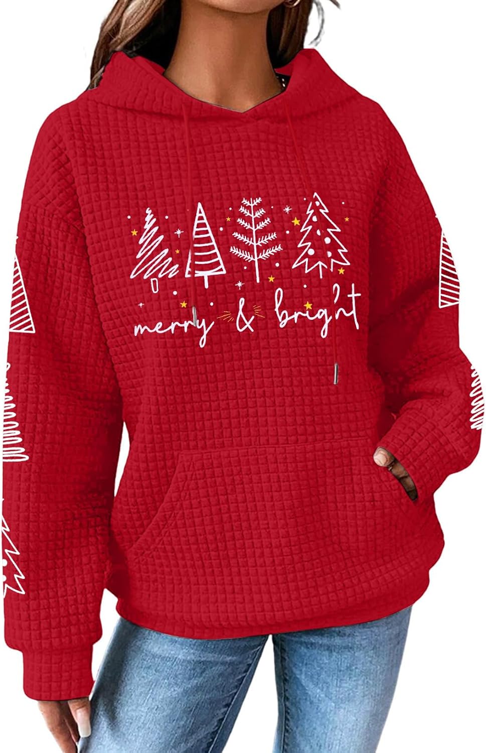 LUKYCILD Christmas Hoodies for Women Merry Christmas Sweatshirts Waffle Knit Pullover Graphic Hooded Sweatshirt with Pocket