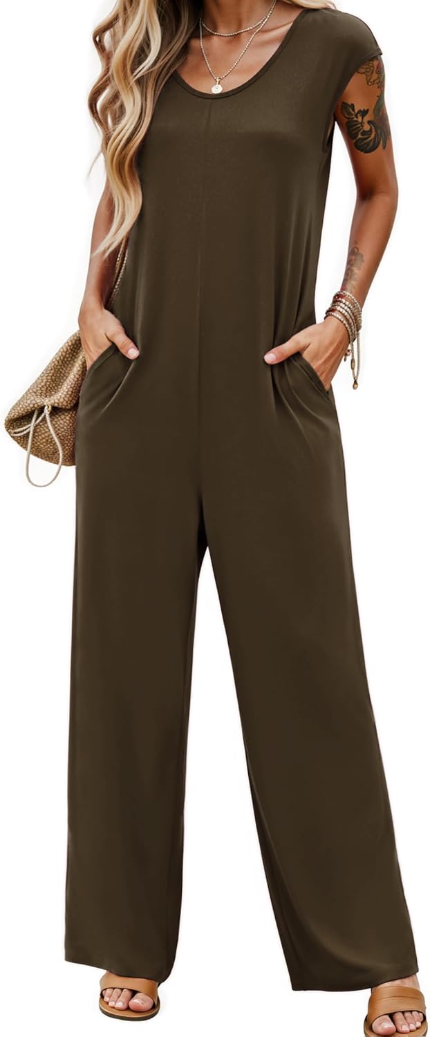 LILBETTER Summer Dressy Jumpsuits for Women One Piece Cap Sleeve Casual Outfits Overalls Wide Leg Rompers with Pockets