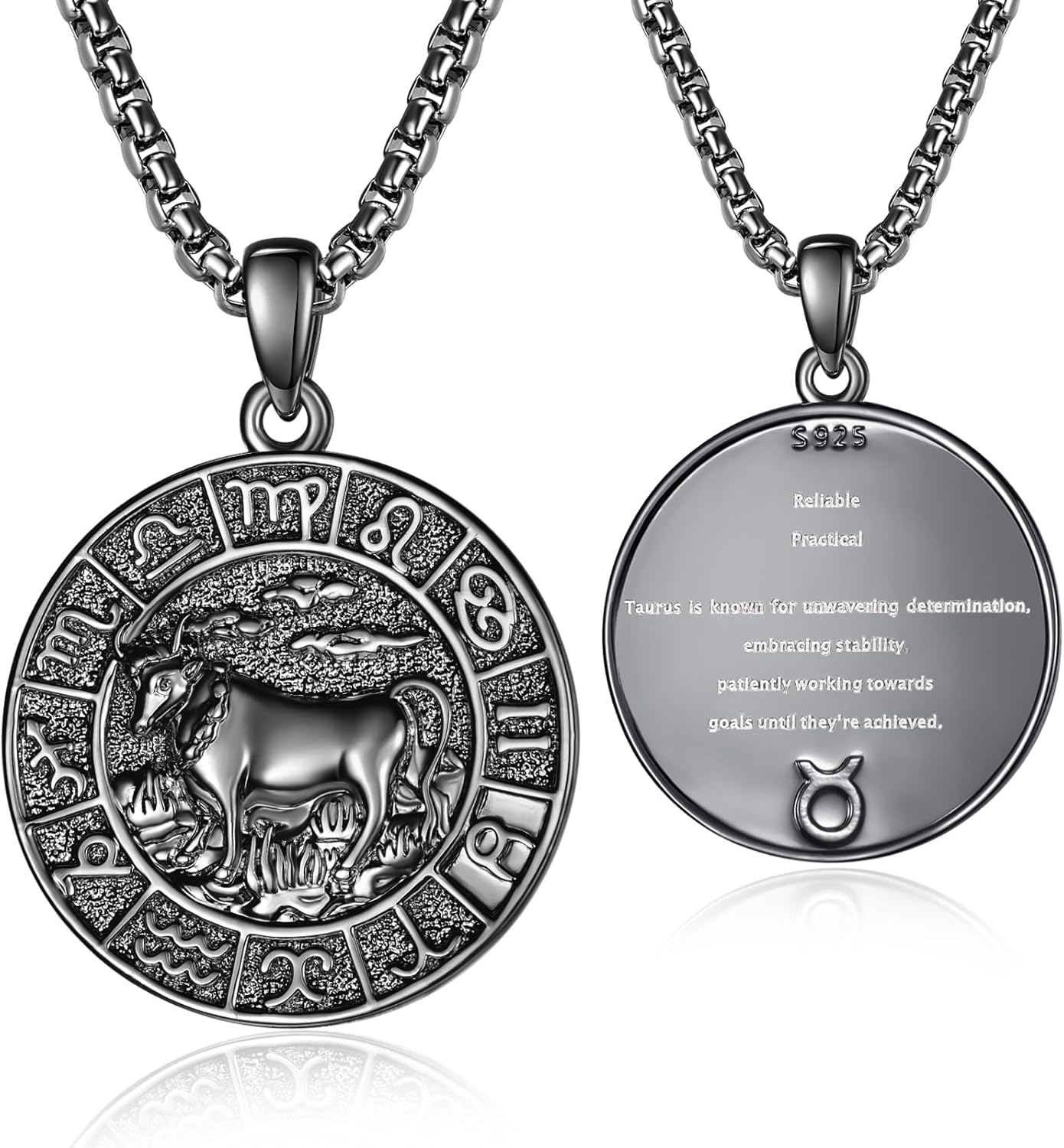 Black Taurus Necklace for Men Sterling Silver Zodiac Constellation Necklace Black Taurus Pendant Jewelry Zodiac Gifts for Men
