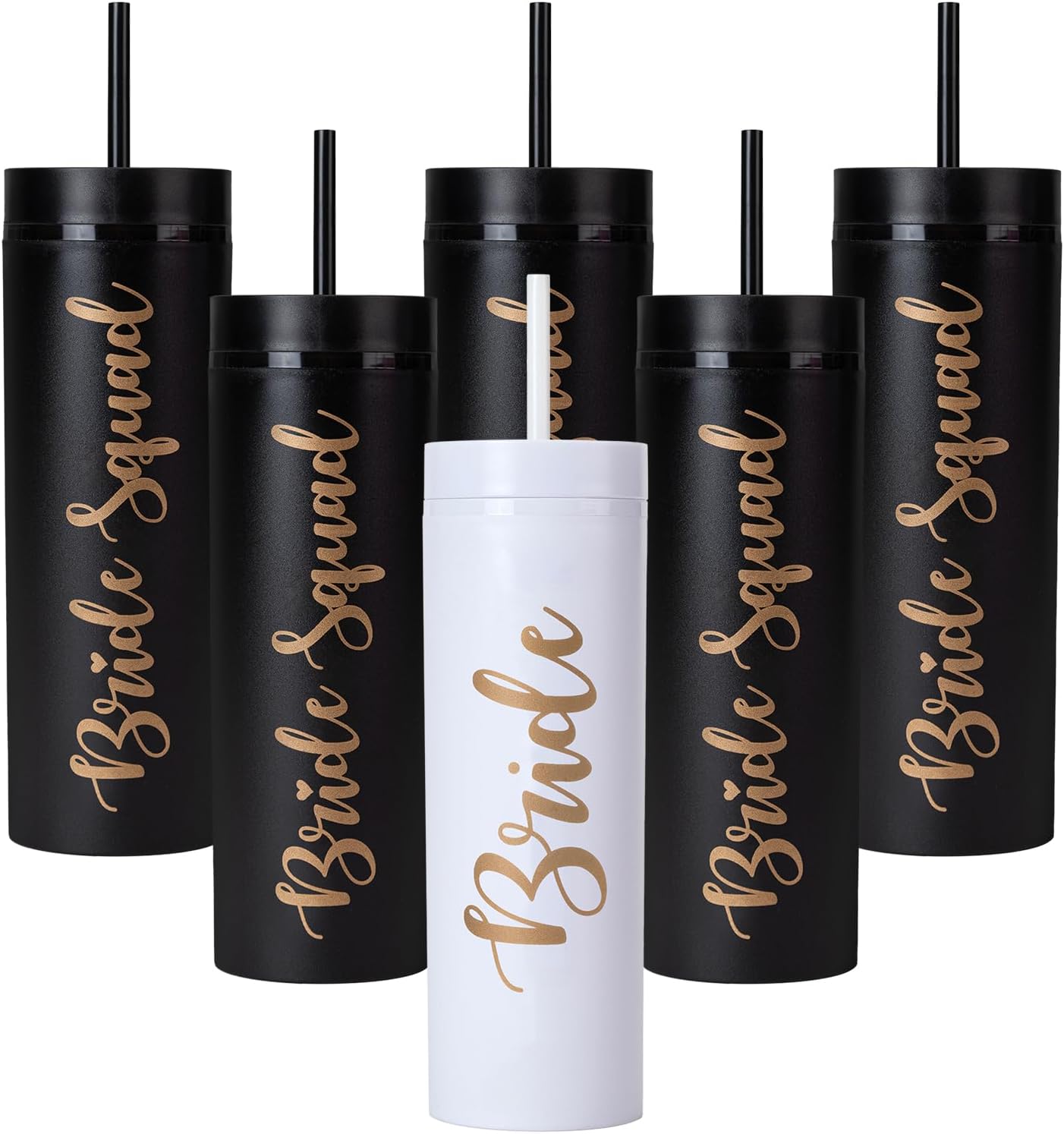 - Bachelorette Party Gifts: designed for bachelorette parties, bridesmaids and brides, you will receive 6 skinny tumblers with lids and straws , including 1 bride tumbler and 5 bride squad tumblers to celebrate, which are ideal bachelorette party bridal gifts