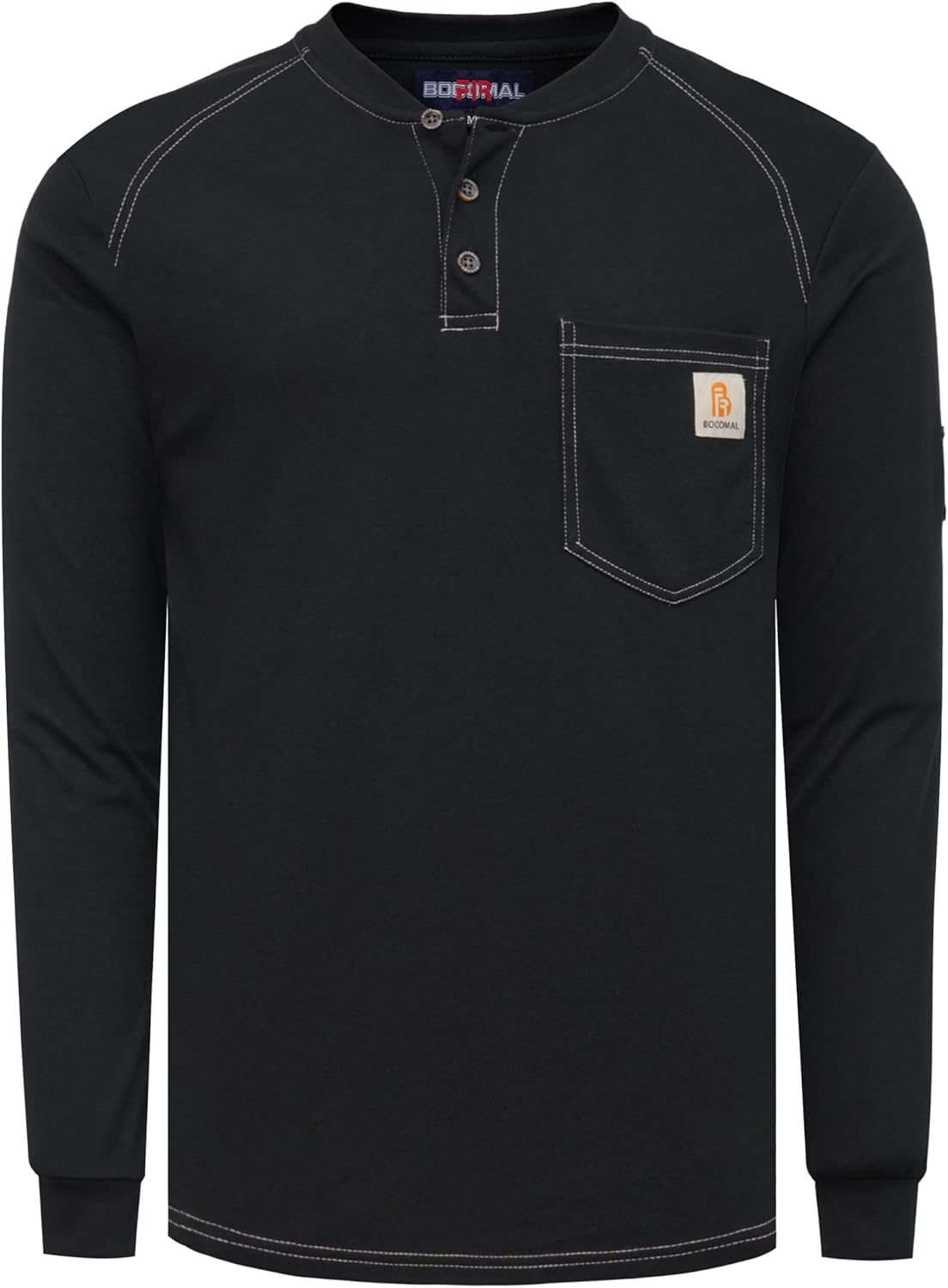 BOCOMAL Men's FR Henley Shirt Flame Resistant 5.5oz Cotton Long Sleeve Workwear UL NFPA2112 CAT2 Welding Tee