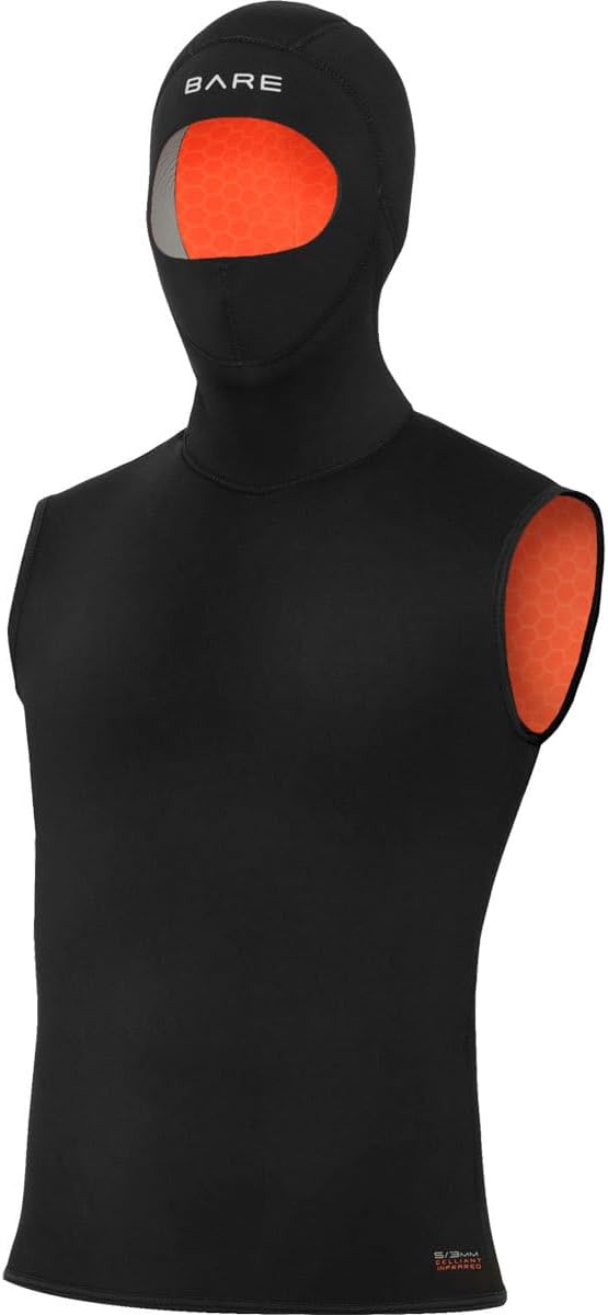 BARE 5/3MM Men's Ultrawarmth Hooded Vest: Wear Inside or Outside Your Wetsuit, Black XL