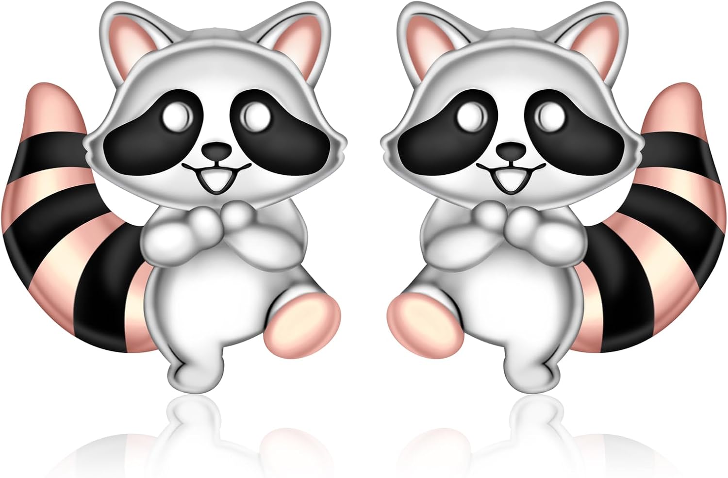 Cute Raccoon Earrings for Women - 925 Sterling Silver Raccoon Earrings Studs Cute Animal Stud Earrings Hypoallergenic Jewelry Gift for Women