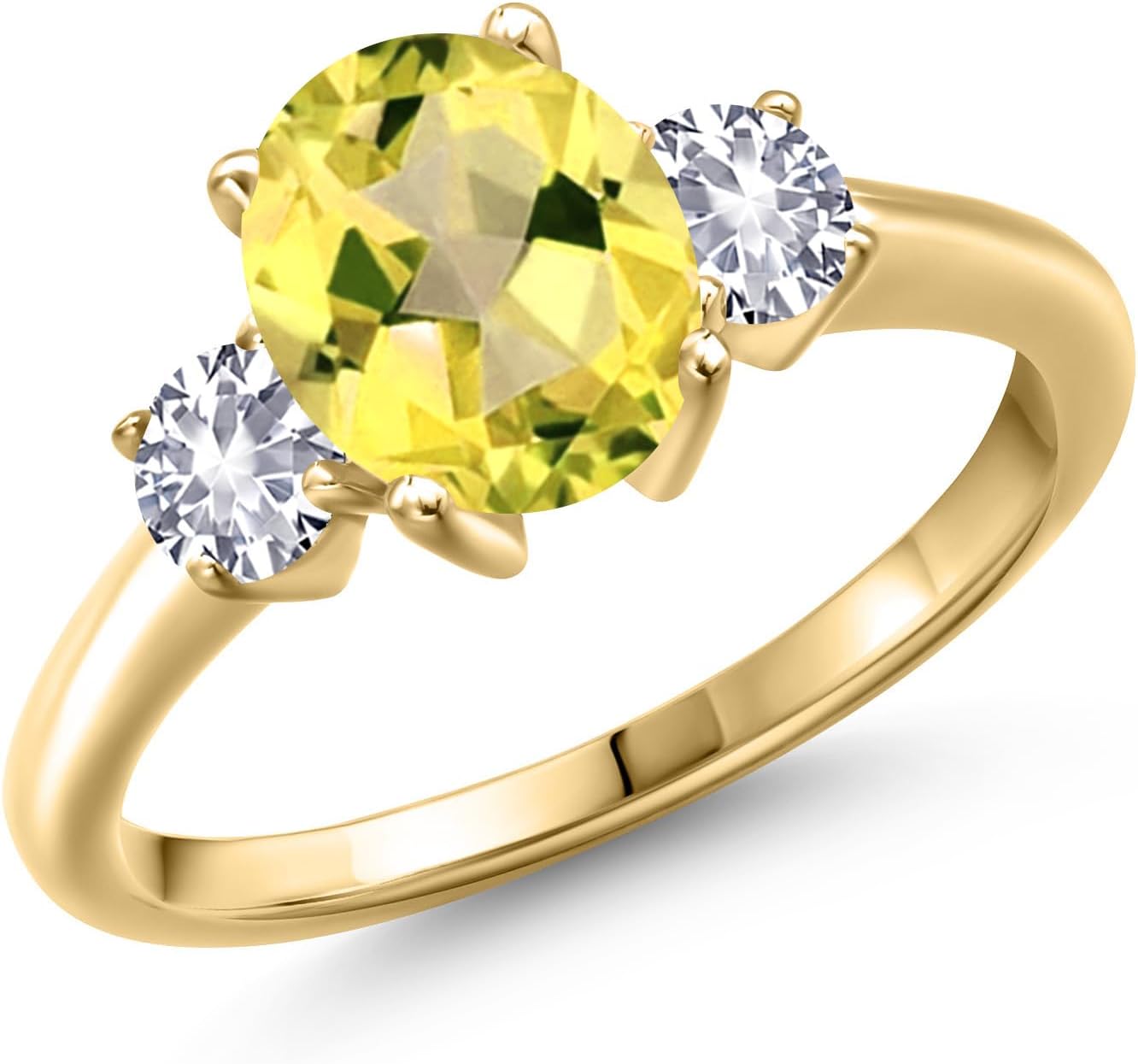 Gem Stone King 10K Yellow Gold Canary Mystic Topaz and White Created Sapphire 3-Stone Engagement Ring For Women | 2.50 Cttw | Oval 9X7MM | Gemstone November Birthstone