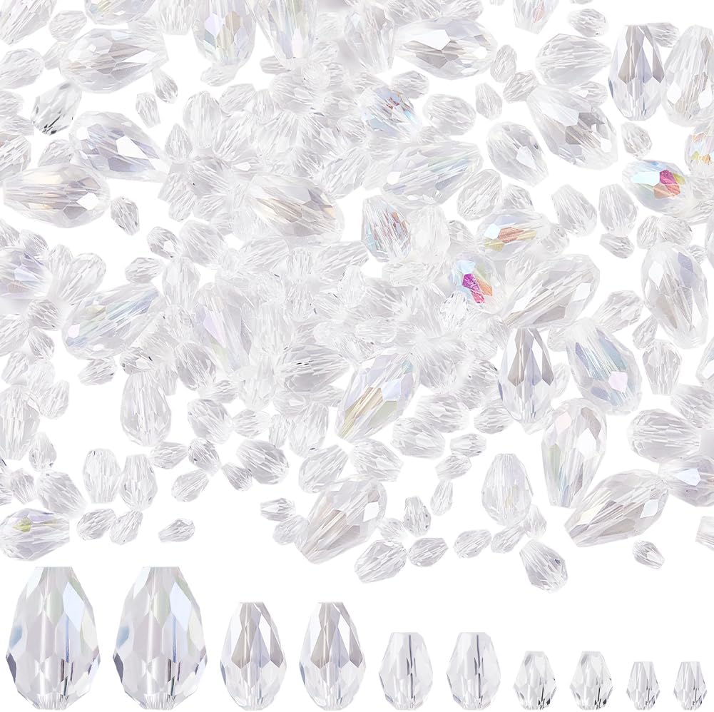SUNNYCLUE 1 Box 280Pcs Teardrop Crystal Glass Beads Teardrop Crystal Glass Beads Bulk Small Shiny Faceted Drop Shaped Transparent Beads for Bracelets Beading Necklaces Making Supplies Fits Women Adult