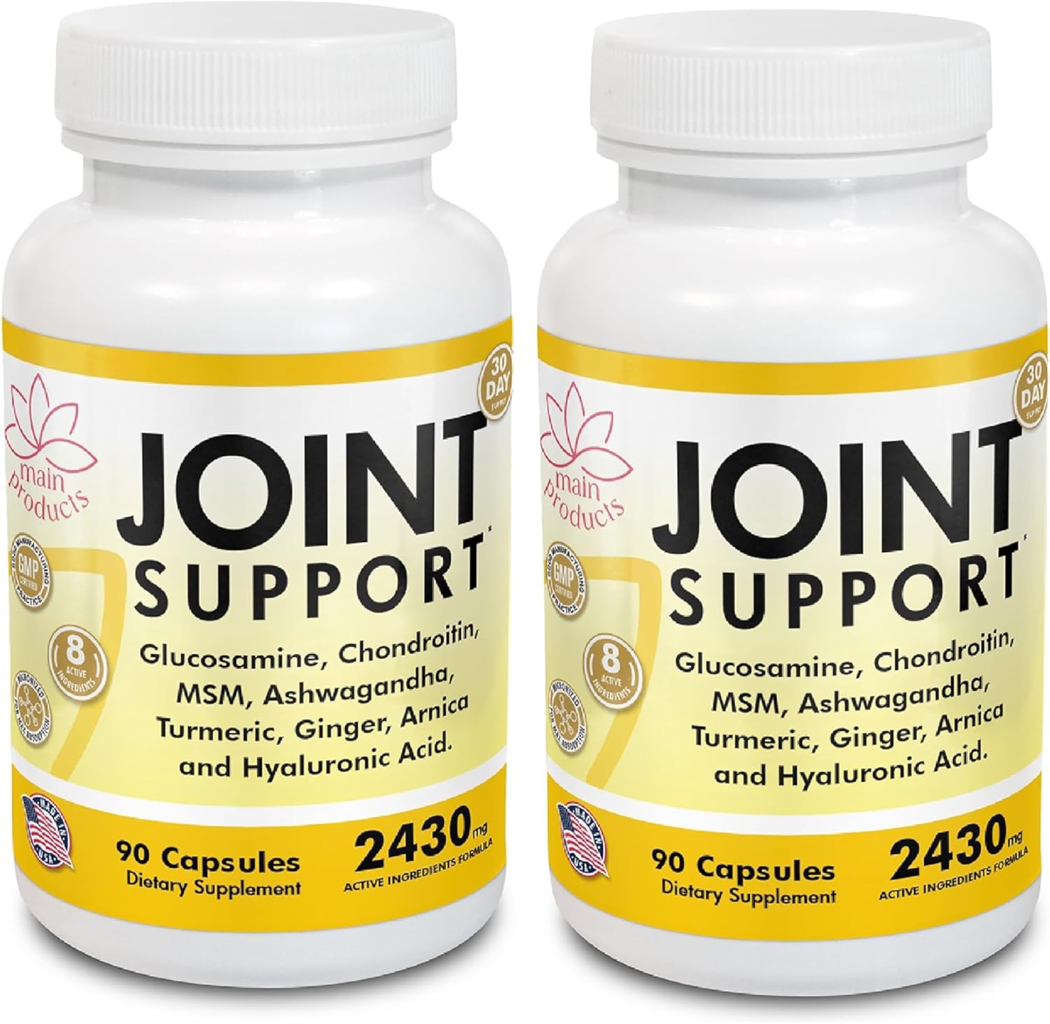 Glucosamine Chondroitin MSM Hyaluronic Acid Ashwagandha Turmeric Ginger Arnica - Joint Support Supplement, Micronized, 2430mg, 2 Pack