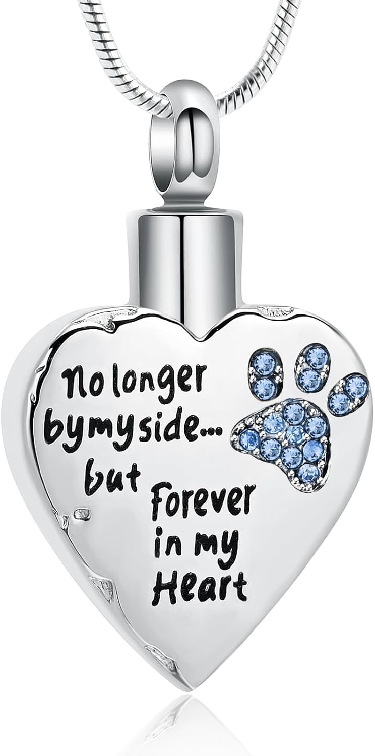 memorial jewelry No Longer by My Side,But Forever in My Heart Carved Locket Cremation Urn Necklace for Pet Dog Cats