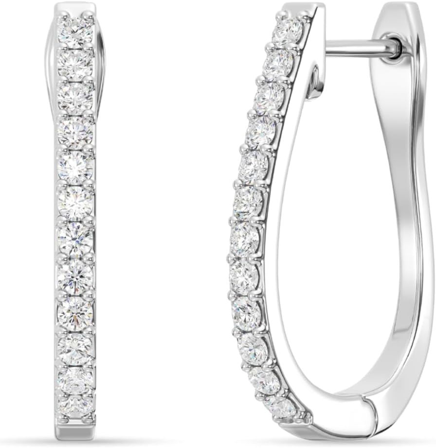 Gilded Lab-Grown Diamond Prong Set Hoop Earrings for Women in 925 Sterling Silver and 14KT Yellow Gold Plated Silver | Hypoallergenic Fine Jewelry | Hinged Closure | SI1 Clarity, F Color |1/4,1/2, 1,2 Carat Total Weight