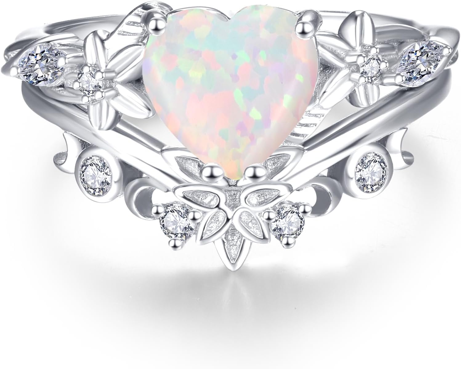 Heart Gemstone Rings 925 Sterling Silver Wedding Rings Moss Agate/Opal/Cubic Zirconia Promise Rings For women Size 5-9