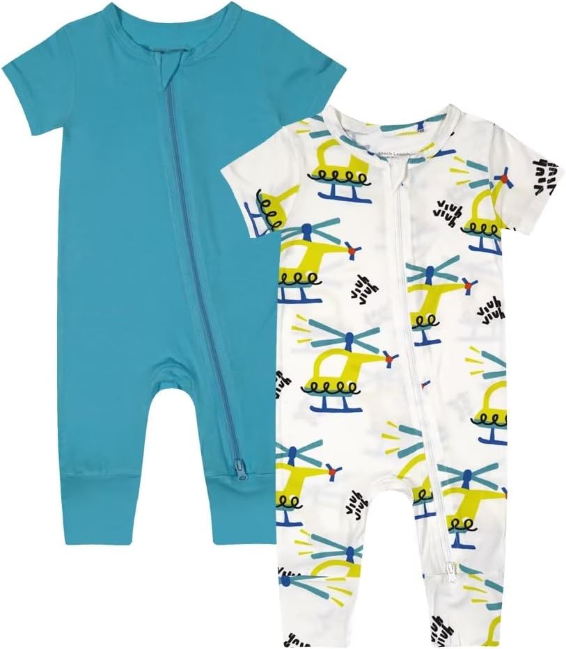 Teach Leanbh Baby Boys Girls 2 Pack Bamboo Viscose Pajamas 2 Way Zipper Short Sleeve Romper Jumpsuit Sleep and Play