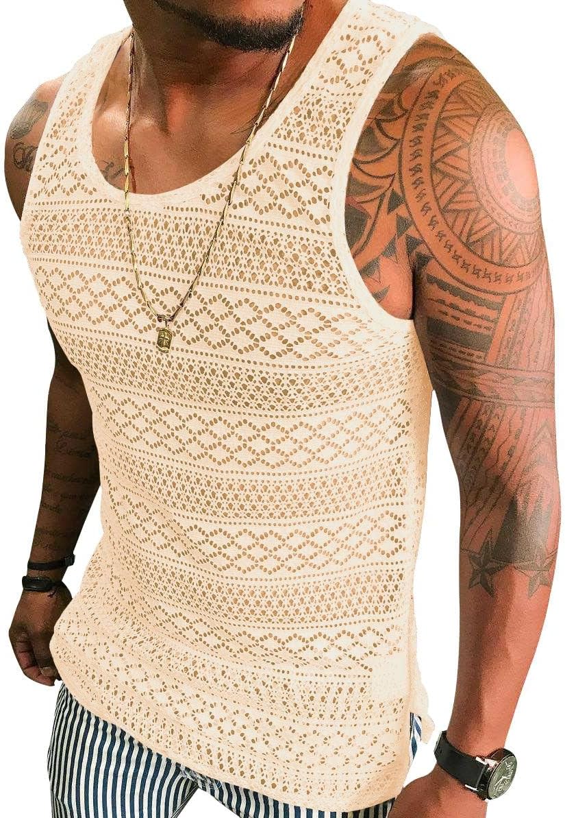 Syktkmx Mens See Through Vest Crewneck Sleeveless Tank Tops Muscle Sexy Mesh Shirts