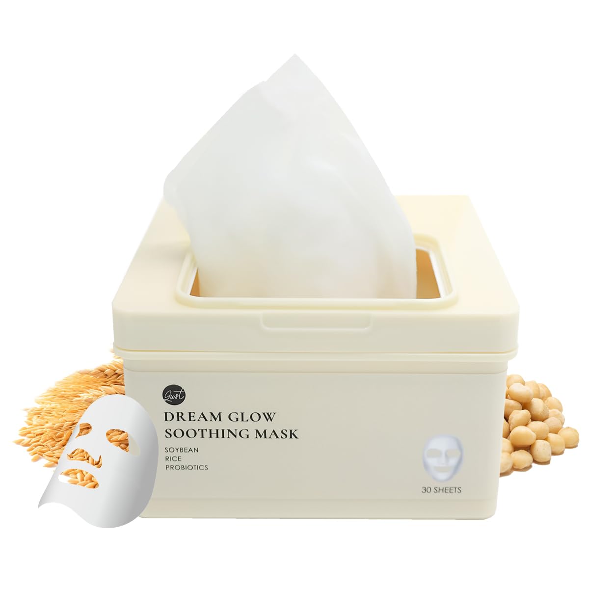 glowiest Dream Glow Soothing Sheet Mask (30 Count) | Soybean Extract & Rice Water, Calming | Niacinamide & Multi-Weight Hyaluronic Acid | Hydrating & Soothing Face Mask for Sensitive Skin