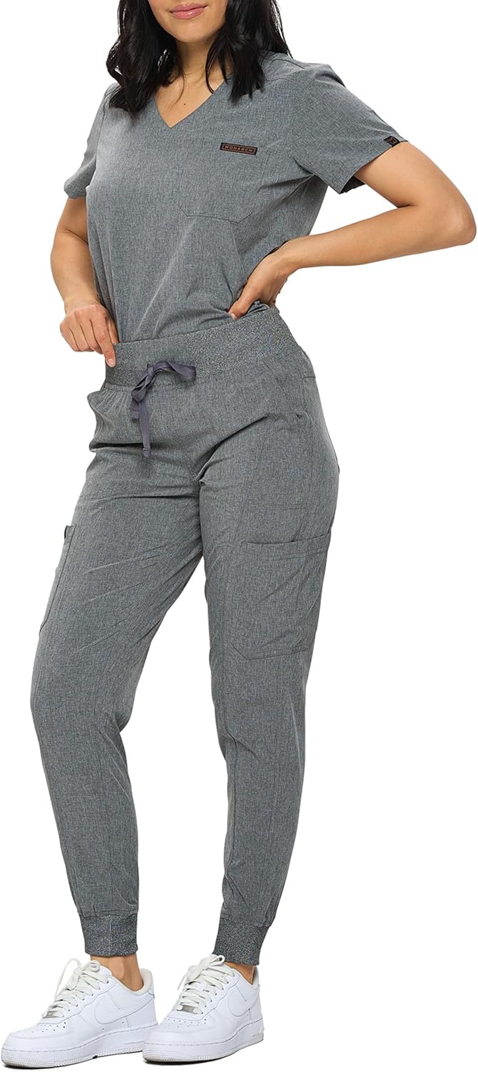 Slim Fit Stretchy Scrubs Women's Jogger Scrub Set Slim Jogger Scrubs with Tuck-In Top for Women