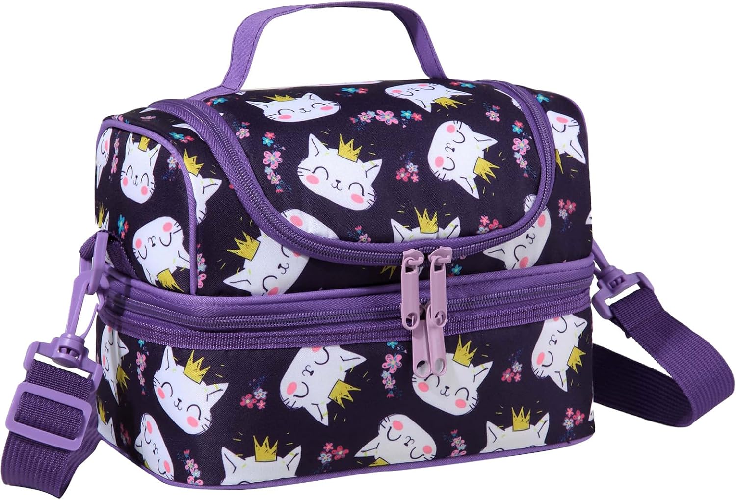 Lunch Bag for Girls,ChaseChic Insulated Lightweight Lunch Boxes for Kids Boys Dual Compartment Lunch Organizer Leak-Proof Cooler Bag with Detachable Adjustable Shoulder Strap,Purple Cats