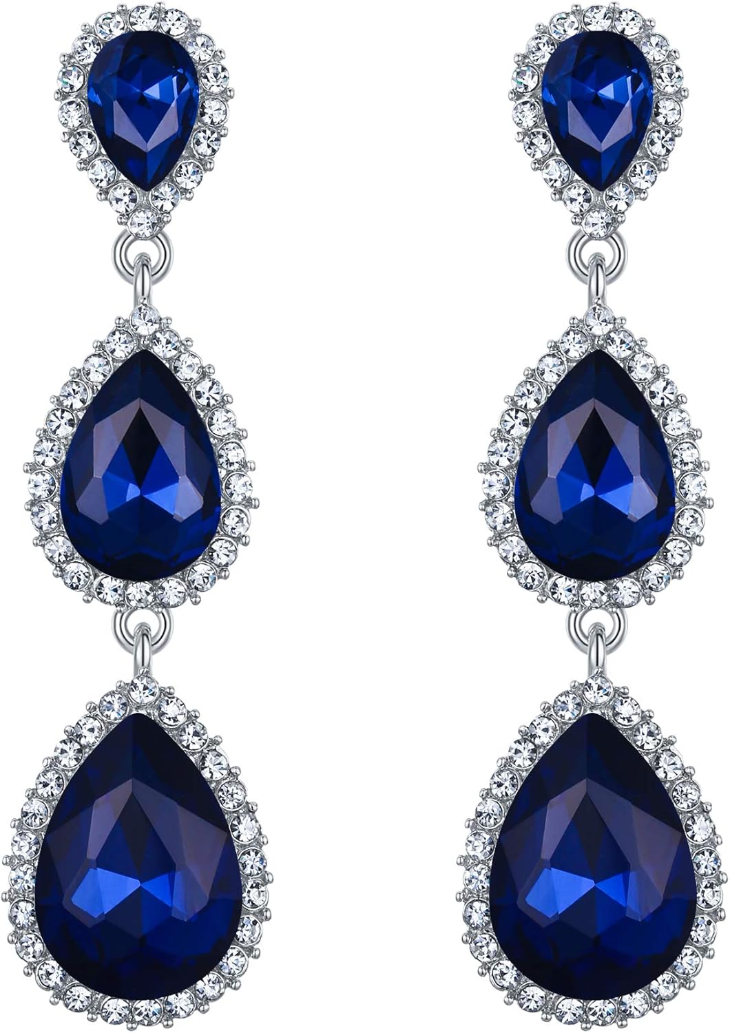 EleQueen Women's Gold-tone Austrian Crystal Teardrop Pear Shape 2.5 Inch Long Earrings