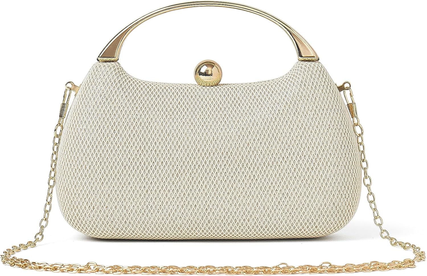 Daiblueland Elegant Evening Bag for Women, Formal Moon Shaped Party And Wedding Clutch Purse With Crossbody Metal Chain