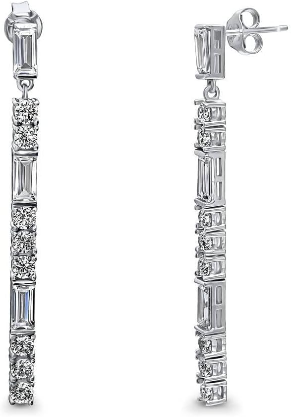BERRICLE Sterling Silver CZ Dangle Earrings for Women, Trendy Simulated Diamond Cubic Zirconia Drop Earrings - Art Deco, Bar, Flower, Teardrop, Filigree Designs