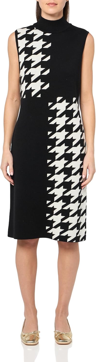 Anne Klein Womens Houndstooth Mock Neck Sweater Dress
