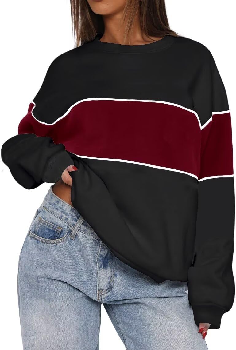 LEEDYA Womens Long Sleeve Sweatshirts Oversized Crewneck Color Block Pullover Top Casual Lightweight Blouse Tops